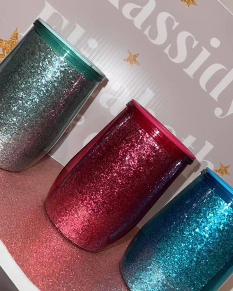 These one of a kind 16 oz glitter wine tumblers are perfect for any glitter or butterfly lover out there!