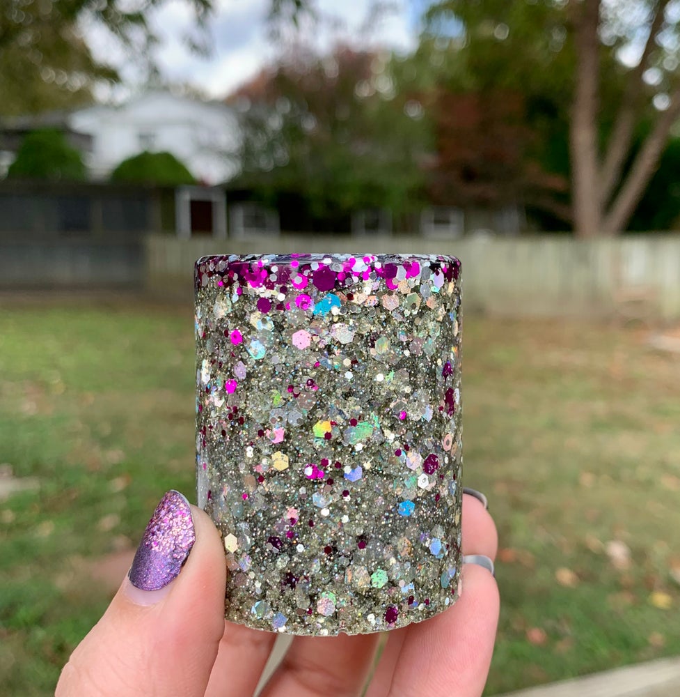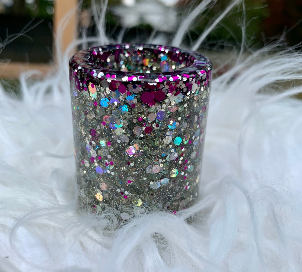These sparkly resin shot glasses are designed and handmade using epoxy and additional decorative and festive add-ins.