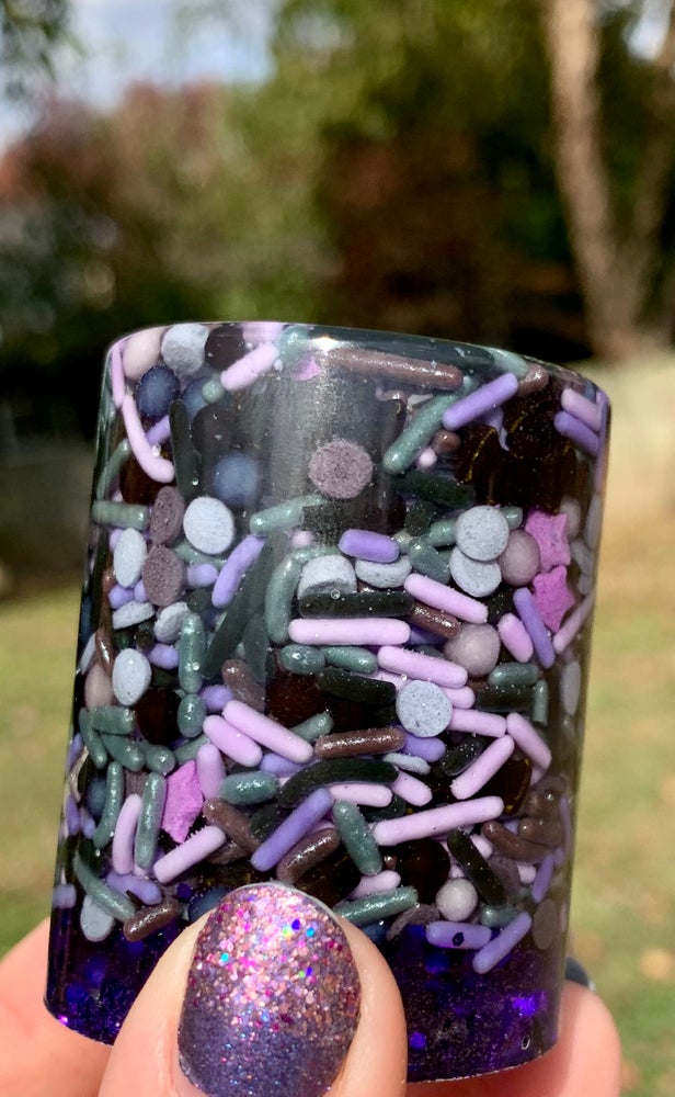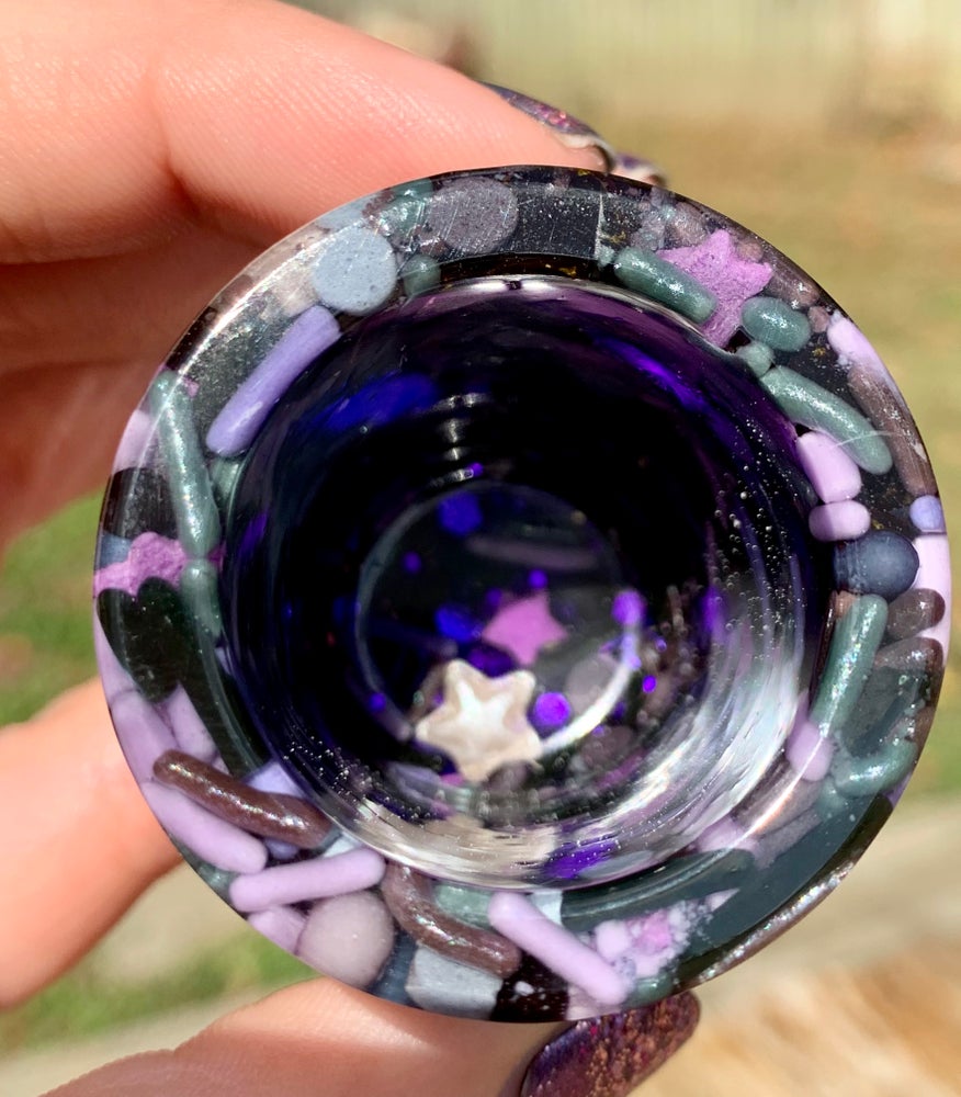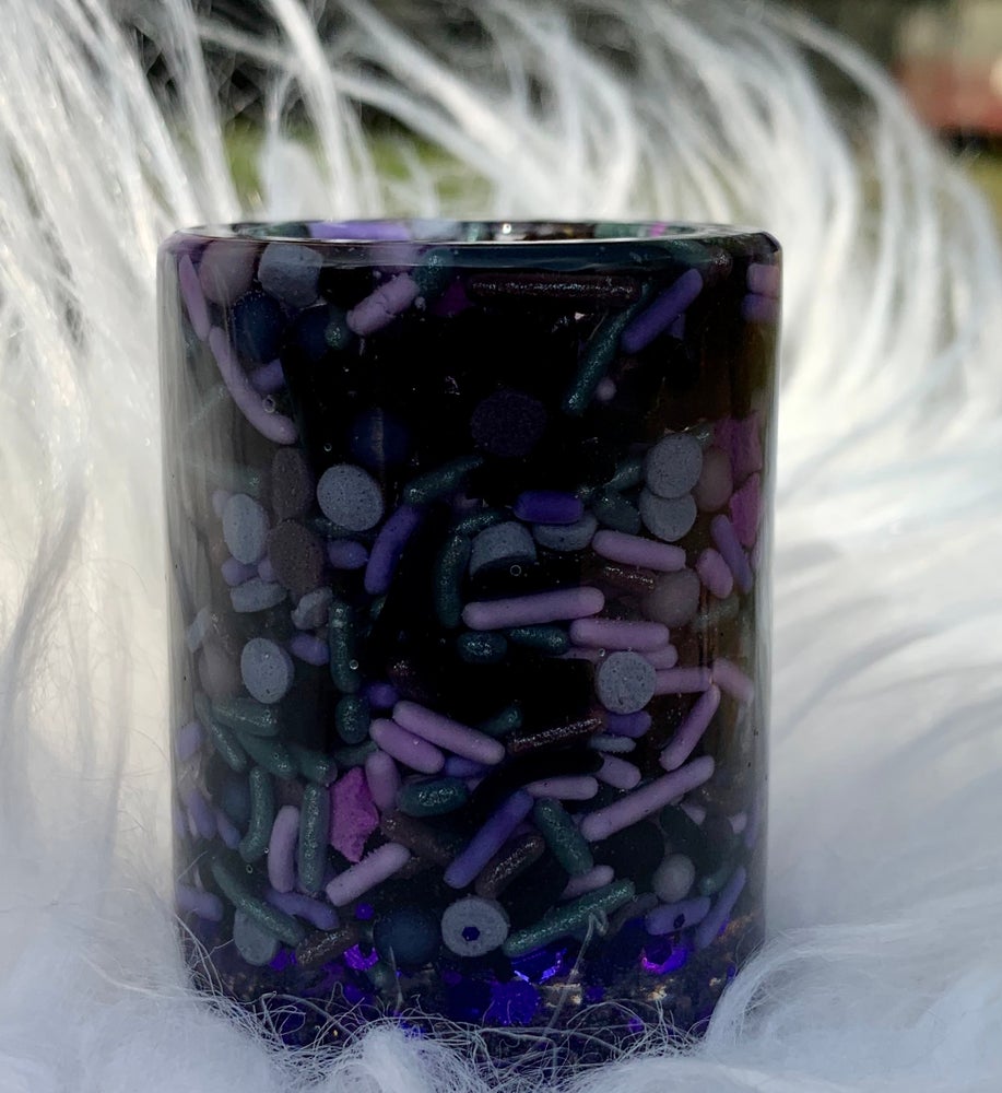 These sparkly resin shot glasses are designed and handmade using epoxy and additional decorative and festive add-ins.