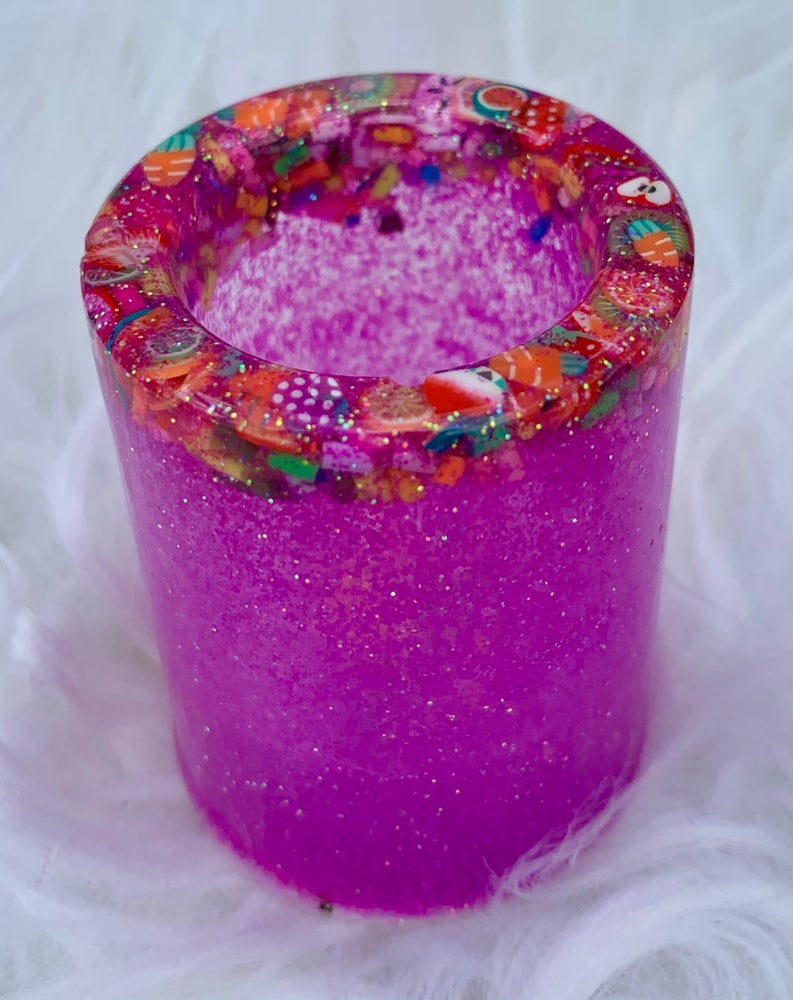 These sparkly resin shot glasses are designed and handmade using epoxy and additional decorative and festive add-ins.